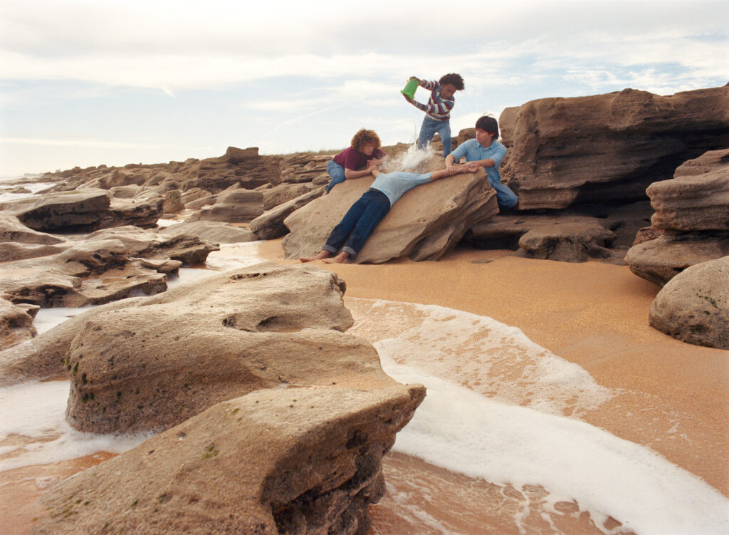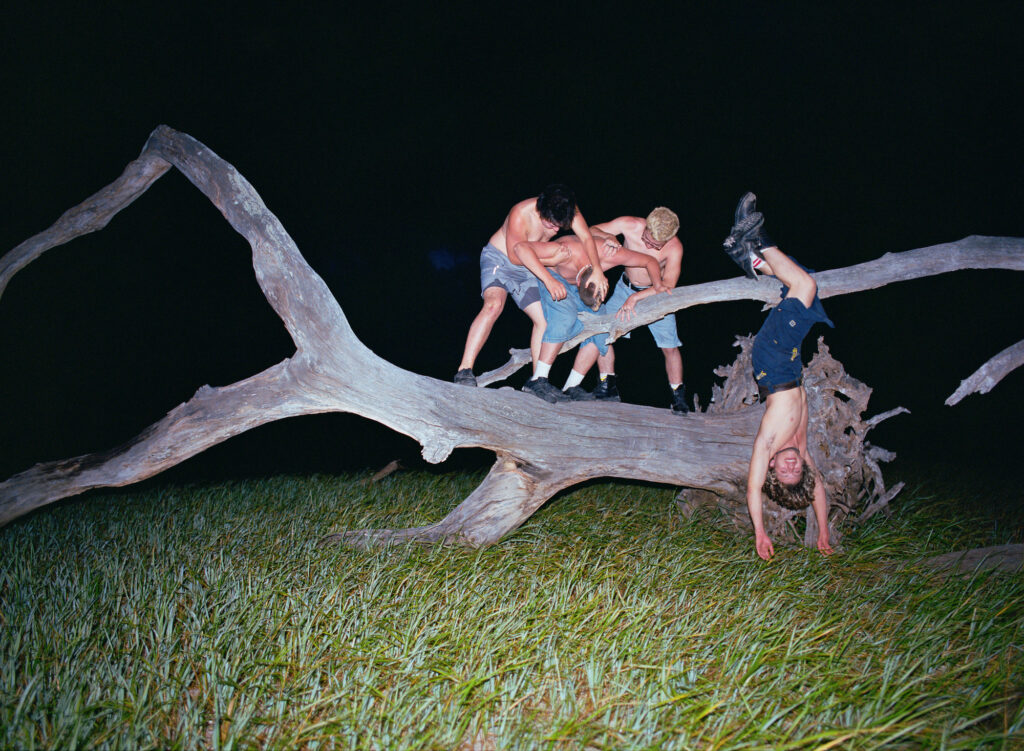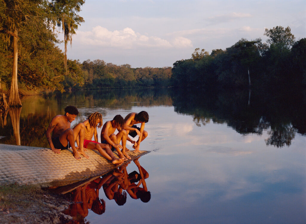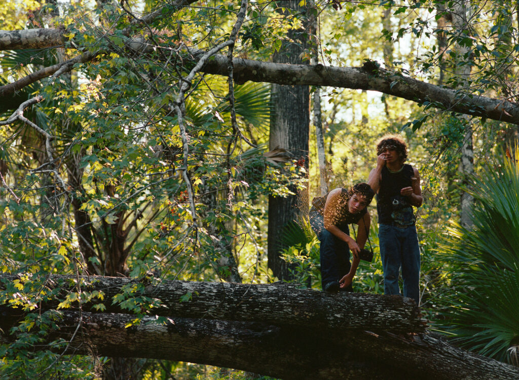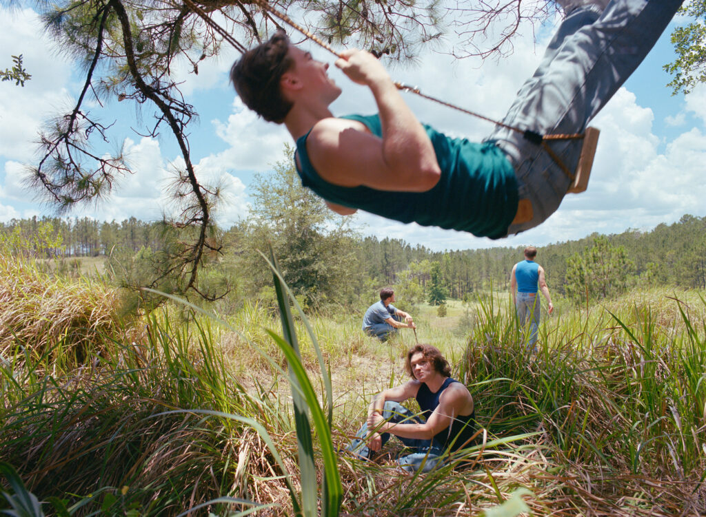 Over time, I began digging into Florida’s photographic history and found the Florida School for Boys archive. It changed the temperature of everything. The land stopped feeling neutral. I couldn’t un-know what sat beneath the beauty. Histories of exclusion, violence, and who has been allowed to rest or roam without fear. Florida is lush and decaying, seductive and brutal. It is a picture postcard with a shadow. So the pictures became tableaux, collective fictions, dreamlike reconstructions, where tenderness could take up space. I wanted to make a counterimage to the loud, flattened mythology of “Florida Man,” and to the screen-shaped masculinity so many young men are handed now. I wanted to picture another way. Boys at ease with one another, bored, affectionate, playful. Porous masculinity that breathes.
