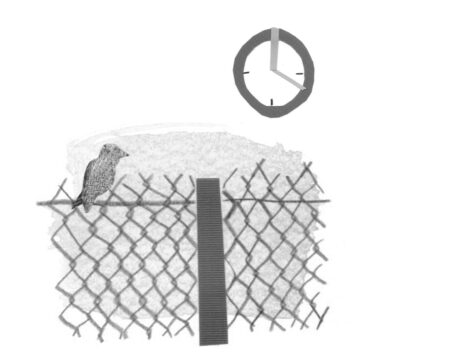 “Outside, in the parking lot, sparrows bathe in the dust. Empires rise and fall. He’ll notice and say nothing of it on the air.”” Small-town AM station, morning show, still doing a gospel number every hour.